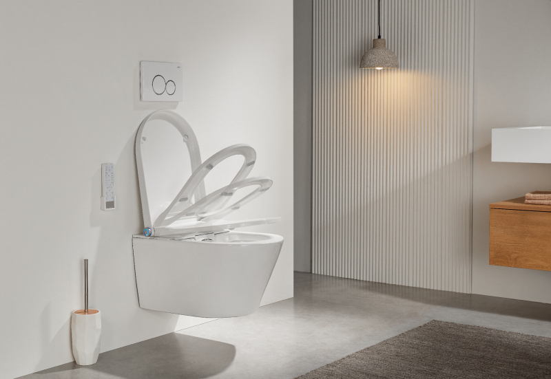 Bidet nabízí tepelně upravovanou vodu s možností nastavení teploty, regulaci tlaku vody, hygienické čištění zadní i přední části, a funkci sušení teplým vzduchem.