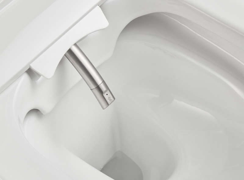 Výsuvná sprška se automaticky vysune před začátkem mycího cyklu a po jeho dokončení se zase zasune zpět do své pozice. Toto řešení zajišťuje maximální hygienu, protože sprška je chráněná a čistá, když není používána. Před každým mytím automaticky vyčistí proudem čisté vody a po dokončení mycího cyklu proběhne opětovné automatické čištění. Tento proces zajišťuje, že trysky jsou vždy čisté a připravené k dalšímu použití. Výsuvná sprška obsahuje trysky pro anální a dámskou hygienu, typ mycího režimu si můžete zvolit podle svých potřeb.