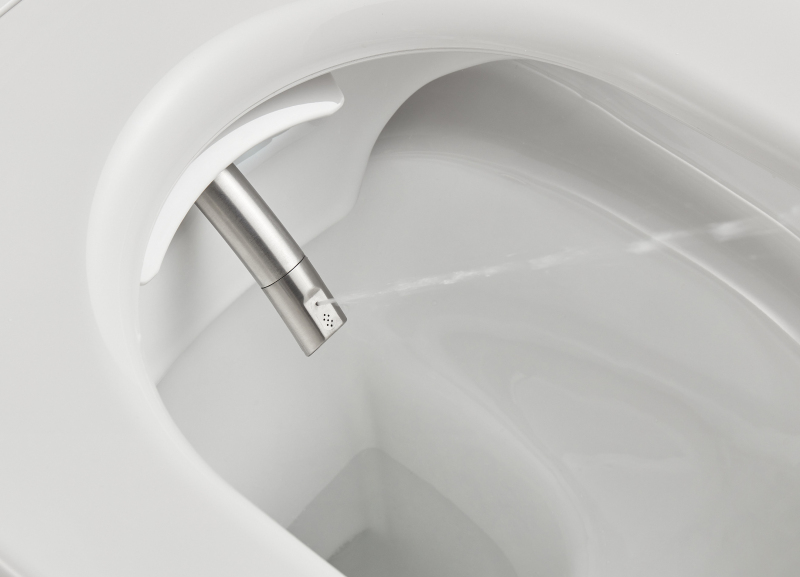Šetrně čistí teplou vodou jemnými pohyby vpřed a vzad. Intenzitu proudu i teplotu si lze přizpůsobit podle potřeby. Tryska se automaticky čistí před a po každém použití, v klidovém stavu je bezpečně ukryta v sedátku. Pro ruční údržbu ji lze jednoduše vyjmout.