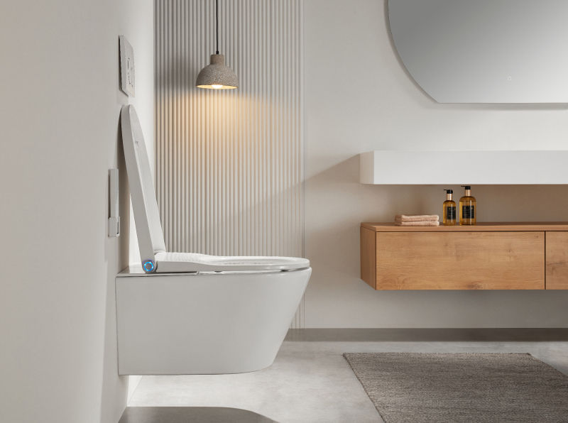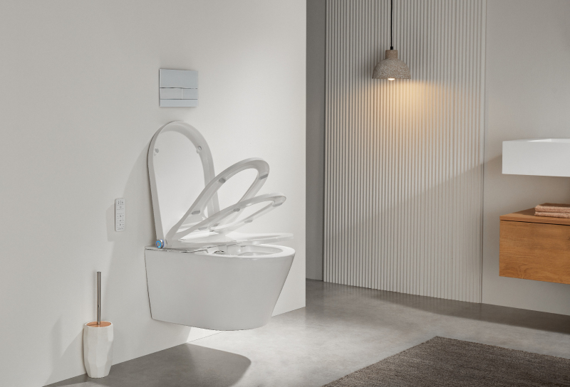 Bidet nabízí tepelně upravovanou vodu s možností nastavení teploty, regulaci tlaku vody, hygienické čištění zadní i přední části, a funkci sušení teplým vzduchem.