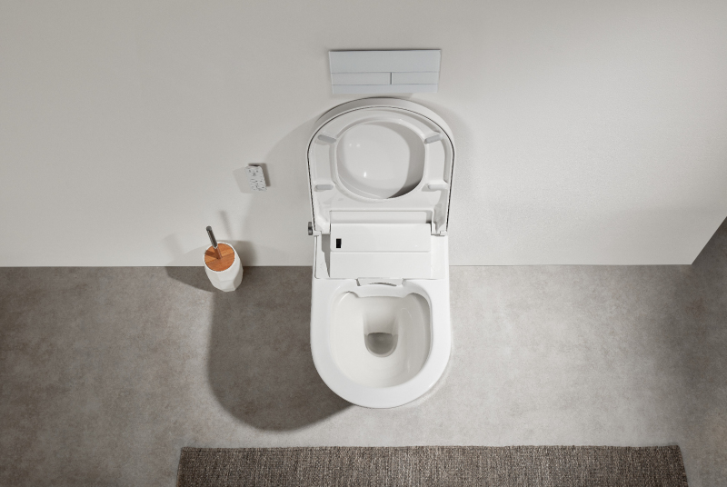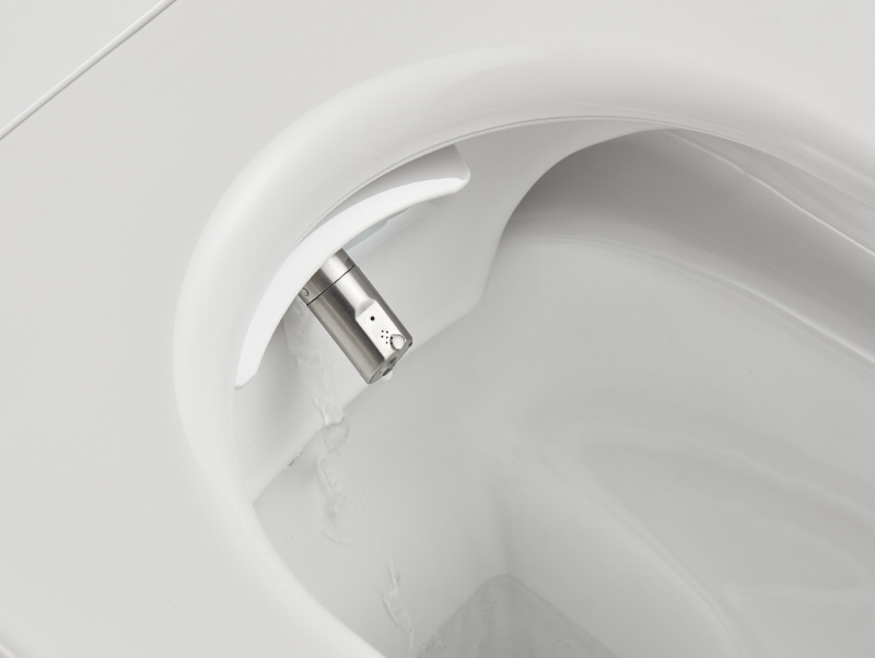 Šetrně čistí teplou vodou jemnými pohyby vpřed a vzad. Intenzitu proudu i teplotu si lze přizpůsobit podle potřeby. Tryska se automaticky čistí před a po každém použití, v klidovém stavu je bezpečně ukryta v sedátku. Pro ruční údržbu ji lze jednoduše vyjmout.