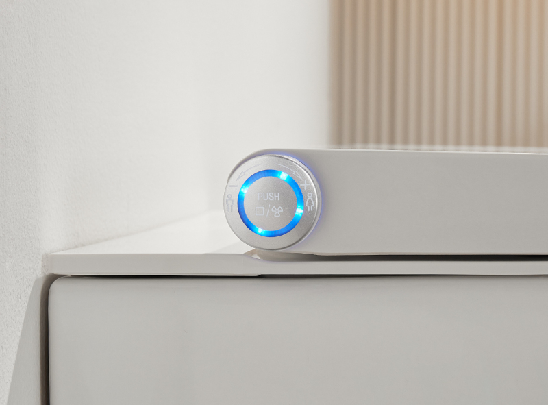 Kruhový ovladač umístěné na boku toalety umožňuje jednoduché a intuitivní nastavení funkcí. Pomocí otočení kolečka můžete regulovat teplotu vody, průtok i polohu mycí trysky, a tím si přizpůsobit mytí přesně podle svých potřeb. Kolečko slouží také k přepínání nočního LED osvětlení mezi režimy, což usnadňuje ovládání bez potřeby dálkového ovladače.