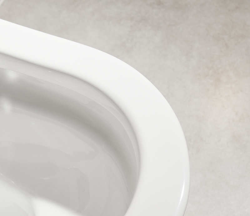 WC mísa je navržena bez tradičního okraje (rimu), který obvykle skrývá těžko přístupná místa. Tento bezokrajový design umožňuje vodě proudit rovnoměrně po celé vnitřní ploše mísy při splachování. Výsledkem je důkladnější a hygieničtější oplach s menším rizikem usazování nečistot a bakterií. Snadnější údržba a lepší čistota jsou hlavní výhody této technologie.