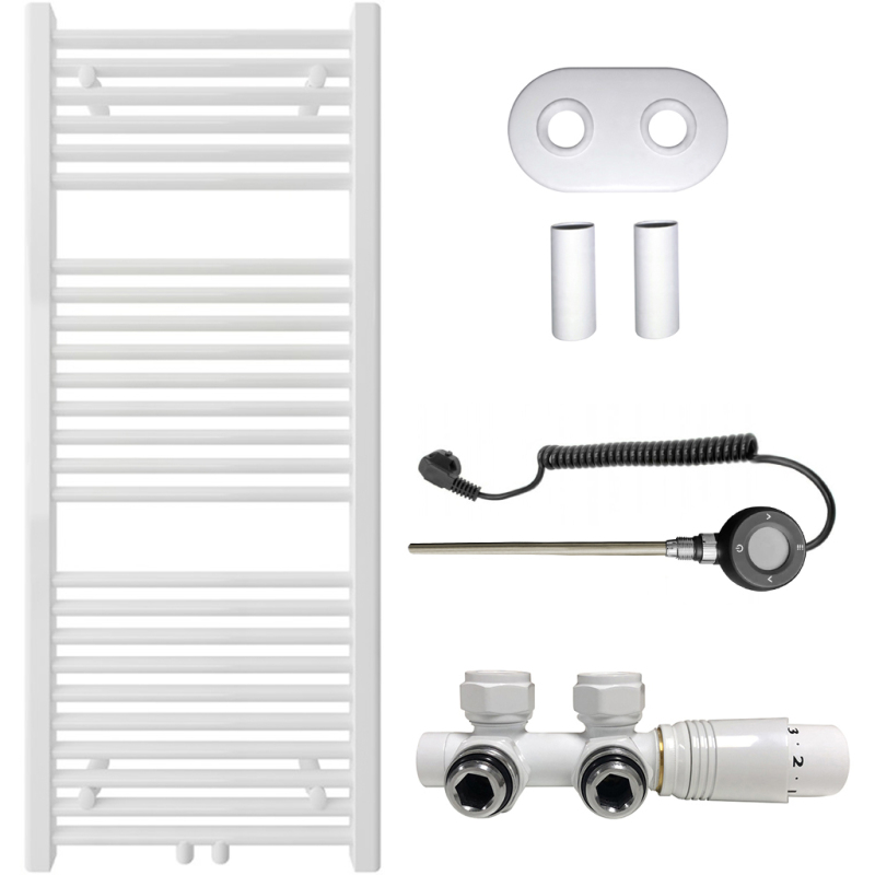 CERANO - Koupelnový radiátorový set Lincoln - kombinované výtápění, wifi tyč - středové připojení 50 mm - 366W - bílá matná - 1200x500 mm