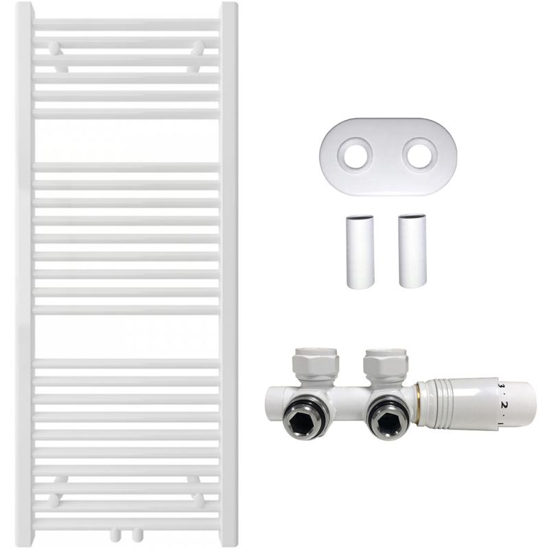 CERANO - Koupelnový radiátorový set Lincoln - ústřední vytápění - středové připojení 50 mm - 366W - bílá matná - 1200x500 mm