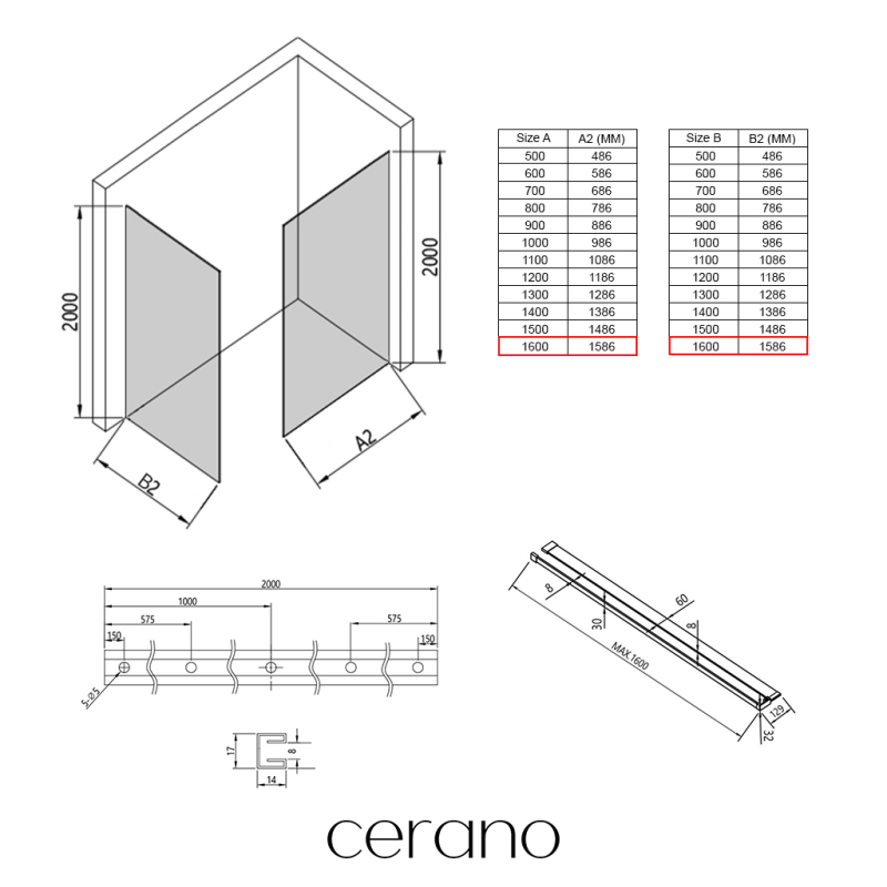 V rámci této série nabízíme širokou škálu rozměrů, abychom uspokojili různé potřeby našich zákazníků. Všechny sprchové kouty, dveře a zástěny značky Cerano jsou plně kompatibilní se sprchovými vaničkami Cerano ve stejných rozměrech, což zajišťuje bezproblémovou instalaci a dokonalé sladění. Sprchový kout lze navíc instalovat flexibilně – buď na odpovídající sprchovou vaničku, nebo přímo na podlahu podle vašich preferencí a možností koupelny.