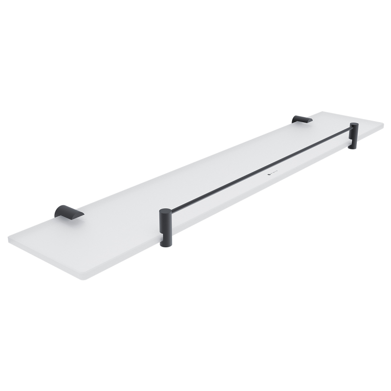 Černá police s ohrádkou. Sklo extra čiré matné. Rozměr 60x11 cm. Tloušťka skla 8 mm!