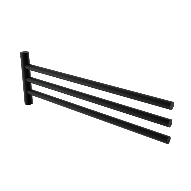 Černý držák na ručníky otočný se třemi rameny.