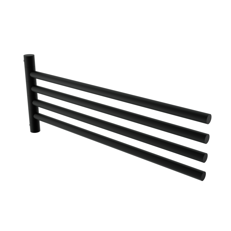 Černý držák na ručníky otočný se čtyřmi rameny.