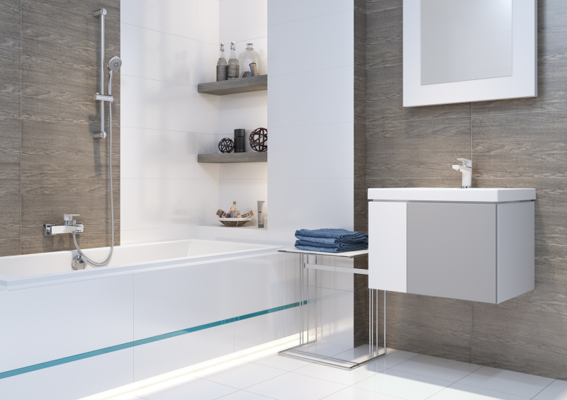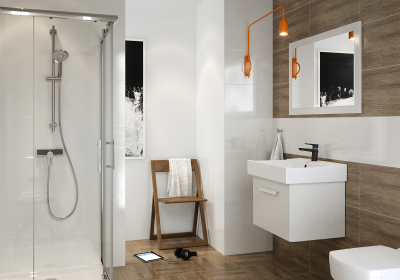Geometricky tvarovaná sprchová baterie MILLE se vyznačuje elegantním bílým tělem, které dokonale ladí s koupelnovou keramikou.