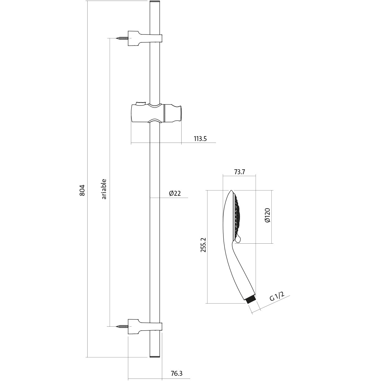 - Sprchová souprava s tyčí a posuvným držákem SENTI.