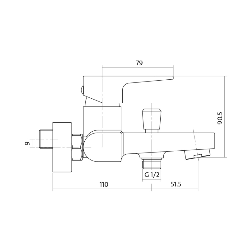 Vanová baterie VIGO jednopáková, dvouotvorová, nástěnná, s pevným výtokovým ramínkem, s přepínačem, CHROM