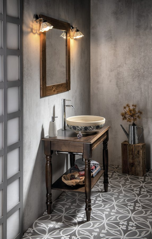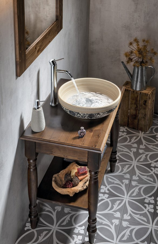 PRIORI keramické umyvadlo na desku, ? 41 cm, hnědá s modrým vzorem PI023