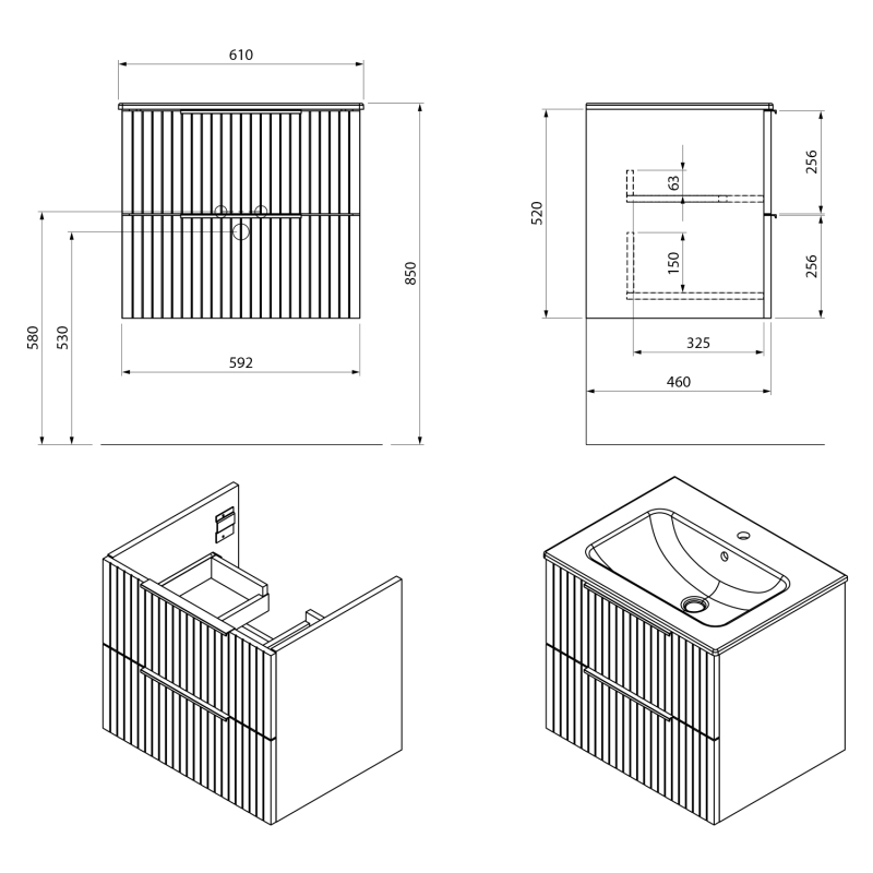 CIRASA STRIP umyvadlová skříňka 59,2x52x46cm, dub alabama