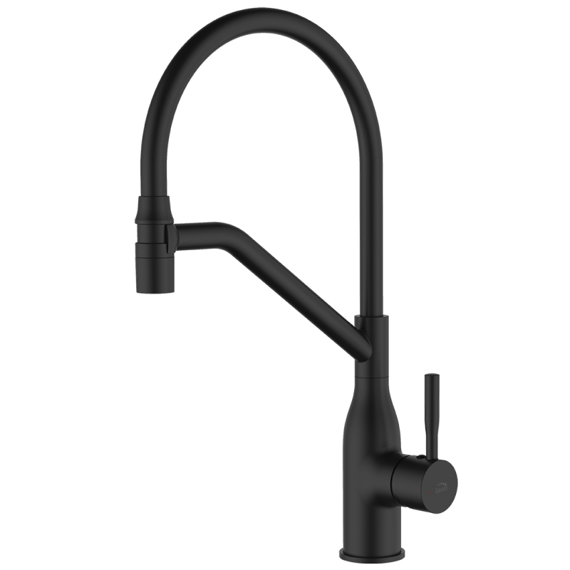 Řada kuchyňských baterií Colina od Laveo kombinuje eleganci, funkčnost a moderní technologie, navržené s ohledem na každodenní pohodlí. Její flexibilní výtok ve tvaru U, upevněný na magnetu, poskytuje plnou volnost pohybu, což usnadňuje oplachování ovoce, mytí nádobí nebo plnění velkých hrnců bez nutnosti s nimi manipulovat. Možnost instalace na zeď a páka, která se pohybuje pouze o 90° dopředu, dělají z Colina vynikající volbu jak pro prostorné kuchyně, tak pro kompaktní kuchyňské kouty.
