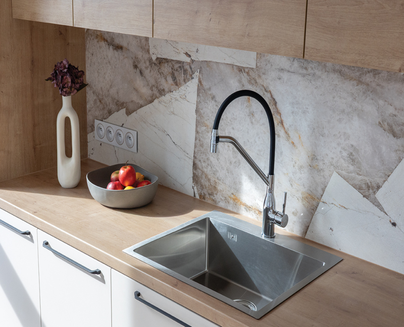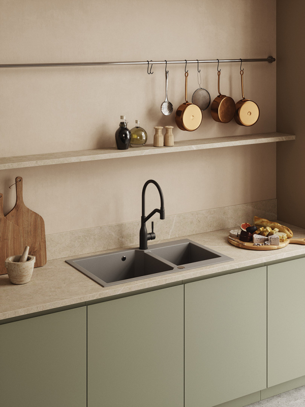Baterie Colina jsou k dispozici ve třech nejtrendovějších barevných variantách, které se bez problémů hodí do různých stylů interiérů. Kombinace chromu a černé je elegantní a nadčasovou volbou pro ty, kteří oceňují kontrastní akcenty – lesklý chrom dodává prostoru svěžest, zatímco matná černá umocňuje moderní charakter kuchyně. Pro ty, kteří dávají přednost klasické moderně, je baterie v jednotné matně černé povrchové úpravě perfektním řešením – minimalistická, stylová a skvěle se hodí do loftových, skandinávských a industriálních interiérů. Grafitová povrchová úprava se vyznačuje jemnou kovovou texturou, která do kuchyně vnáší nádech sofistikovanosti a krásně ladí s betonovými pracovními deskami, dřevěnými povrchy a matnými čelami skříněk.