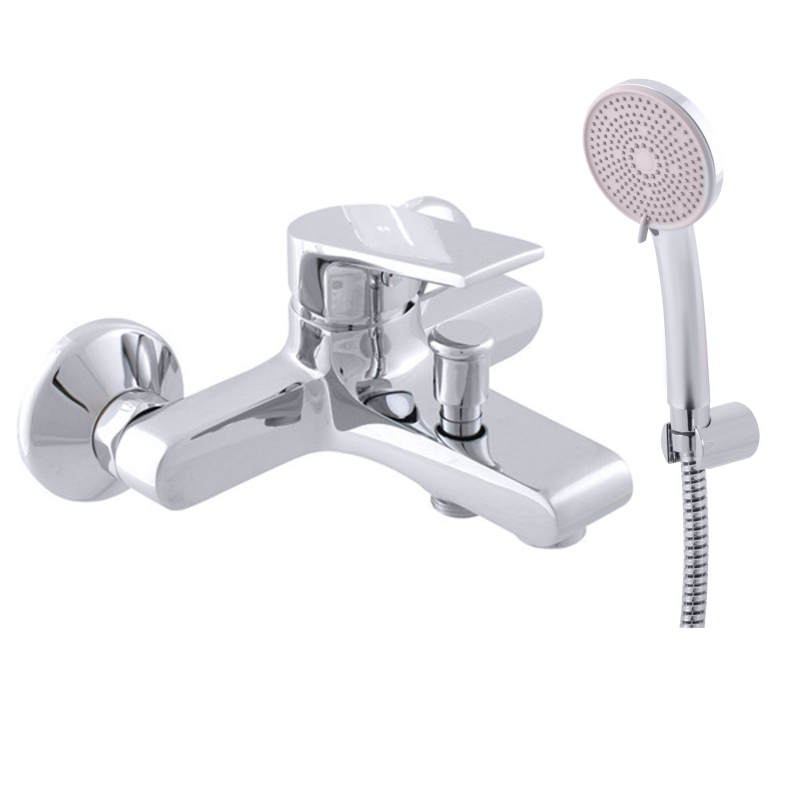 Vodovodní baterie vanová nástěnná se sprchou a pevným držákem.
