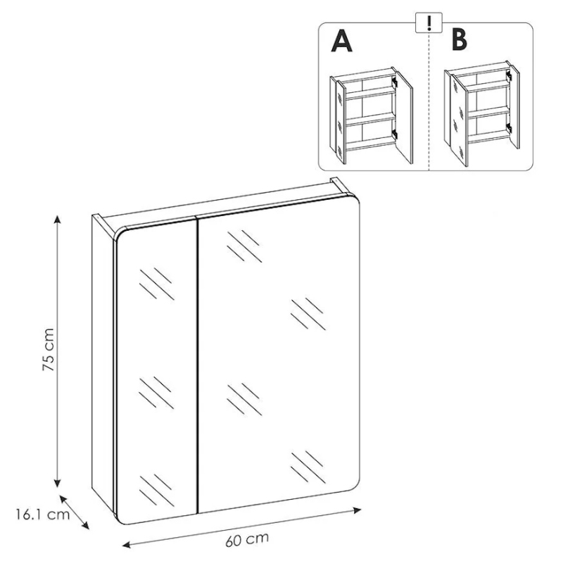 Koupelnová zrcadlová skříňka 60cm Aruba White 841