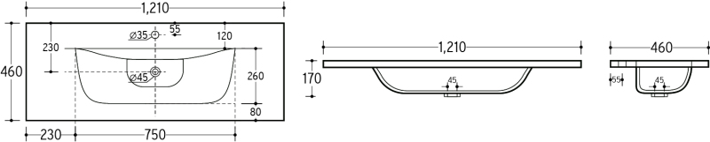 Comad SKY 1 BLACk MATT 120D DP Nábytkové umyvadlo 120, DB