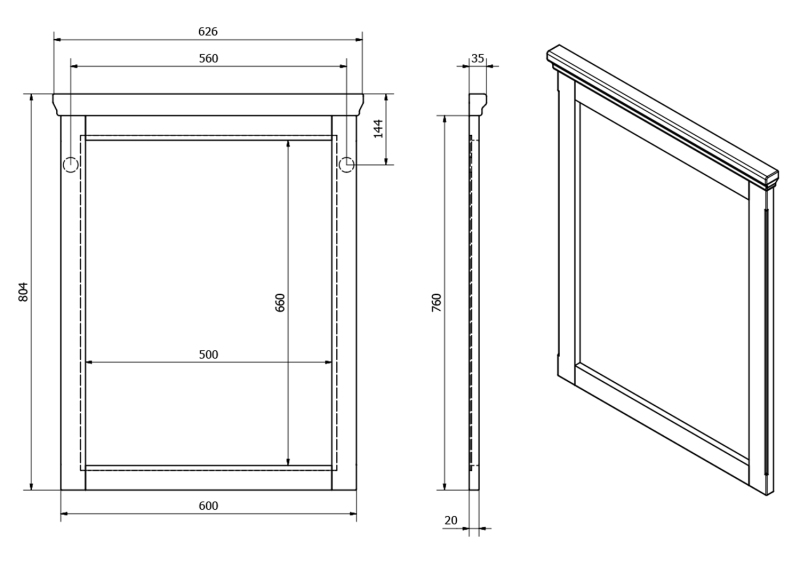 CROSS zrcadlo v dřevěném rámu 600x800mm, starobílá CR211