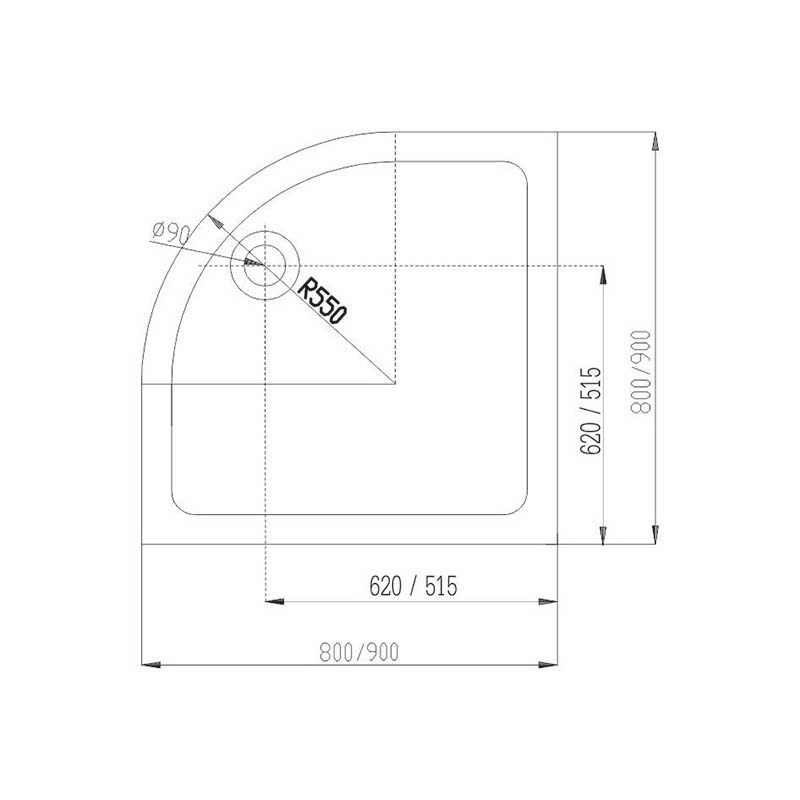 Keramická čtvrtkruhová sprchová vanička, 80x80x6,5 cm, R550. Zobrazit více