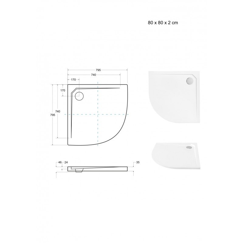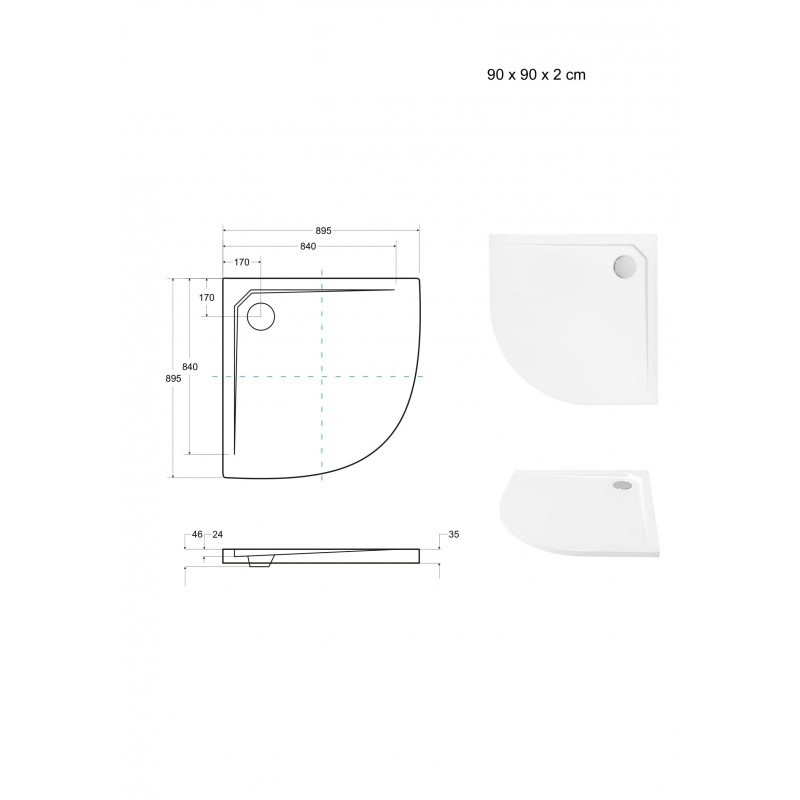 Vanička je vhodná k osazení na moderní čtvrtkruhové sprchové kouty Olsen Spa.