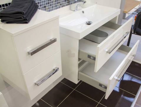 Zásuvky se samouzavíracími pojezdy jsou velmi praktické a poskytují dostatek úložného prostoru pro vaše hygienické potřeby nebo třeba pro ručníky.