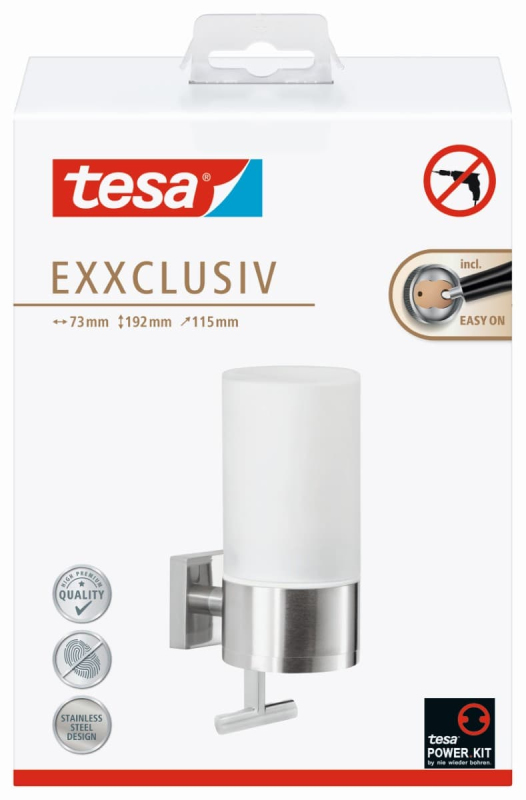 Samolepicí dávkovač mýdla tesa® Exxclusiv je mimořádně okouzlujícím doplňkem, který obohatí každou koupelnu a snadno se připevňuje.
