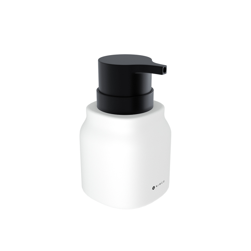 Keramický dávkovač na tekuté mýdlo bílý matný. Pumpička plastová černá matná. Objem 400 ml. Soft-touch povrch.