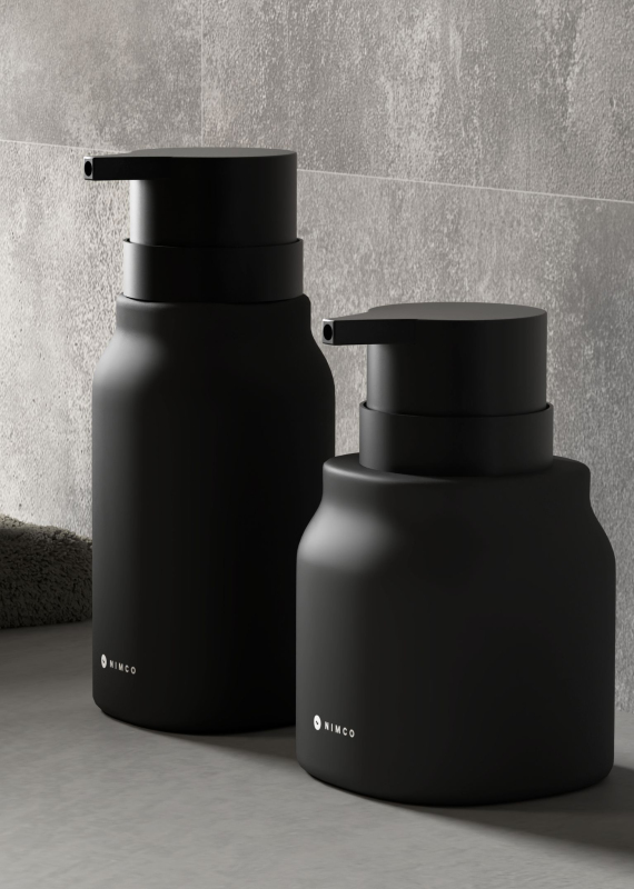 Keramický dávkovač na tekuté mýdlo k postavení na umyvadlo. Matný povrch keramické nádobky Soft-touch je hebký a příjemný na dotek. Pumpa je plastová a díky své větší ploše se dobře používá.