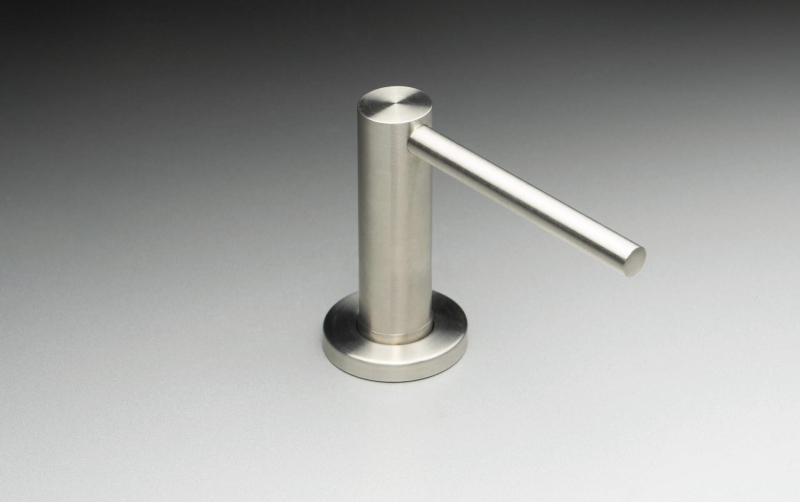 Dávkovač mycího prostředku pochází z kolekce Aster. Je vyroben z vysoce kvalitní nerezové oceli a má povrchovou úpravu v barvě kartáčované oceli. Jeho dlouhý výtok je mimořádně funkční. Dokonale doplňuje armatury ve stejné povrchové úpravě. Dávkovač mycího prostředku lze namontovat pod dřez nebo volitelně do pracovní desky vedle dřezu. První možnost umožňuje použít předřezaný otvor v dřezu. Pokud žádný není k dispozici, můžete si jej vytvořit sami – v žulovém dřezu, ve vyfrézované ploše (pokud je k dispozici) nebo v ocelovém dřezu, kdekoli, pomocí speciálního zařízení na řezání otvorů.