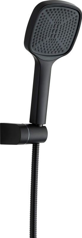 Sprchová sada se skládá z ruční sprchy, ocelové hadice a rukojeti. Ruční sprcha je vybavena systémem Anti-Calc, který chrání před usazováním vodního kamene, a sprchovou hlavicí s dešťovým efektem pro příjemný a relaxační sprchový zážitek. Rukojeť s nastavitelným úhlem umožňuje pohodlné polohování ruční sprchy podle individuálních potřeb. Celá sada je v matně černé barvě, která zdůrazňuje moderní a elegantní charakter sady.