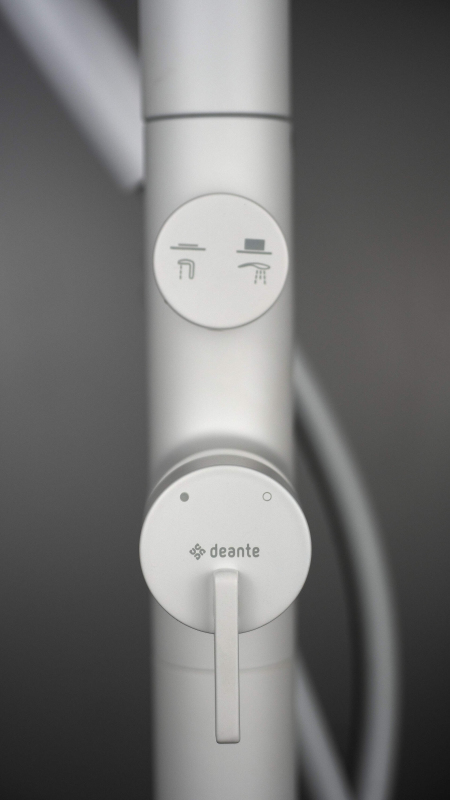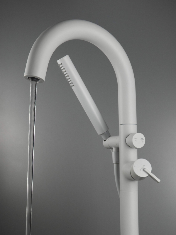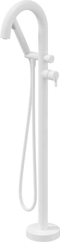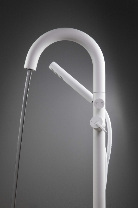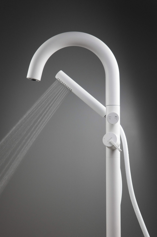 Sloupová baterie Bianco pro volně stojící vany v matně bílé povrchové úpravě zaujme svým decentním a minimalistickým designem. Výtok ve tvaru U dokonale doplňuje moderní trendy a dodává každé koupelně eleganci a harmonii. Baterie je vybavena hadicí Anti-Twist, která zabraňuje zalomení, a sprchovou hlavicí s jemným dešťovým proudem, takže poskytuje výjimečný komfort používání. Mosazné tělo a keramická hlavice zaručují spolehlivost a odolnost. Nastavitelný úhel rukojeti a přesný keramický přepínač funkcí činí tento model nejen esteticky příjemným, ale i vysoce praktickým. Matně bílá povrchová úprava zdůrazňuje svěžest a čistotu formy.