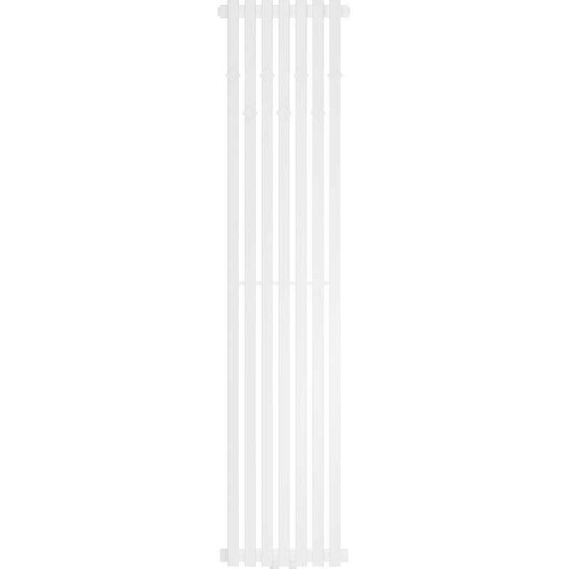 Technické údaje: Výška: 1500 mm Šířka: 340 mm Hloubka: 102 mm Rozteč připojení: - 144 cm (bočně) nebo 5 cm (uprostřed) Barva: Bílá RAL 9016 Materiál: Ocel Hmotnost: 13,16 kg Reakce na oheň: A1 Provozní teplota: max. 95 °C Maximální provozní tlak: 0,6 MPa Topný výkon: - 75/65/20 °C - 630 W Připojení: - 2xG ½″ uprostřed - 4xG ½″ shora a zdola na pravé nebo levé straně Počet háčků na ručníky: 7 Vysoce kvalitní, odolný nátěr odolný proti korozi Sada obsahuje: závěsy, montážní sadu, záslepky a odvzdušňovací otvor