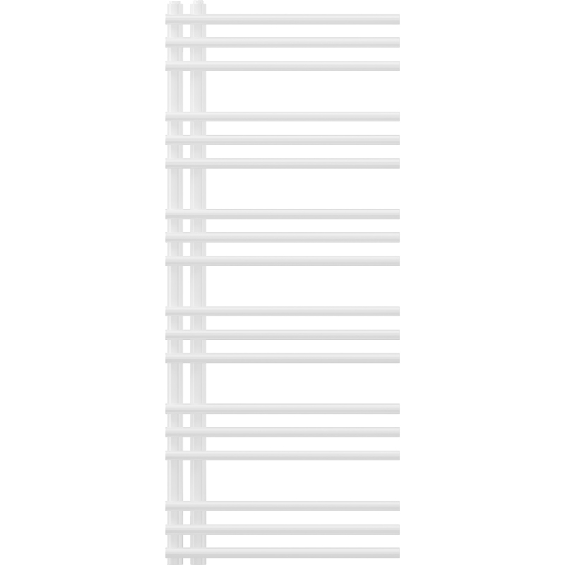 Technické údaje: Výška: 1200 mm Šířka: 500 mm Hloubka: 66 mm Rozteč připojení: 5 cm Barva: Bílá RAL 9016 Materiál: Ocel Hmotnost: 8,47 kg Reakce na oheň: A1 Provozní teplota: max. 95 °C Maximální provozní tlak: 0,6 MPa Topný výkon: - 75/65/20 °C - 456 W Připojení: - 4xG ½″ uprostřed Možnost instalace topného tělesa Vysoce kvalitní, odolný nátěr odolný proti korozi Sada obsahuje: závěsy, montážní sadu, záslepky a odvzdušňovací otvor