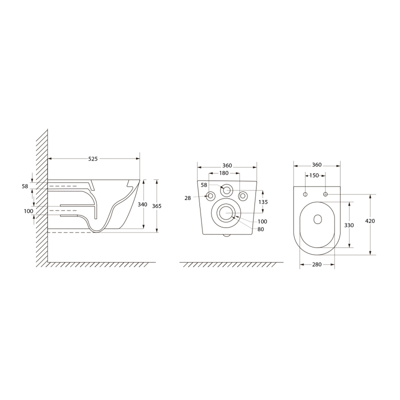 DENICA závěsná WC mísa, Vortex Rimless, 36x52cm, bílá