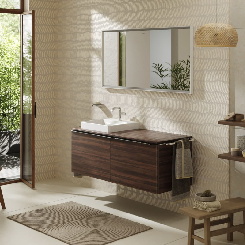 Deska pod umyvadlo Hansgrohe Xelu Q 136x1,6x55 cm tmavý ořech 54097630