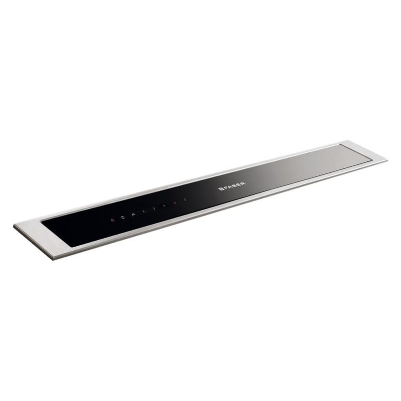 Bezmotorová výsuvná digestoř do pracovní desky Faber FABULA BK A90 RB (90 cm) v nerezu/černém skle. Po zapnutí se vysune a díky štěrbinovému sání účinně odsává páry. Dotykové/dálkové ovládání, intenzivní režim, doběh, signalizace filtrů a LED 4000 K. Pro externí ventilační jednotku; hloubka jen 10 cm šetří místo.