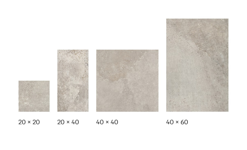 Mrazuvzdorná dlažba v šedé barvě o rozměru 20x20,20x40,40x40,40x60 cm a tloušťce 10 mm s matným povrchem. Vhodné do interiéru i exteriéru. V balení 0,72 m2. V imitaci kamene. S velkými a nahodilými odchylkami v odstínu barev, struktury povrchu a kresby. Vhodné do kuchyně, kanceláří, na balkóny.