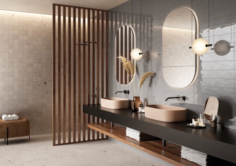 Rektifikované. Mrazuvzdorné. Dlažba v barvě sand a v terrazzo designu o rozměru 89,7x89,7 cm a tloušťce 9 mm s matným povrchem. Vhodné do interiéru i exteriéru. S malými rozdíly v odstínu barev, struktury povrchu a kresby.PEI 4 – vysoká odolnost