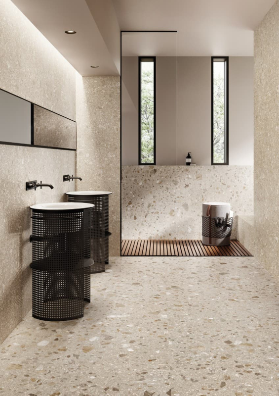 Rektifikované. Mrazuvzdorné. Dlažba v barevném provedení mix sabbia a v imitaci kamene o rozměru 59,8x59,8 cm a tloušťce 9,5 mm s matným povrchem. Vhodné do interiéru i exteriéru. S velkými rozdíly v odstínu barev, struktury povrchu a kresby. Vysoce odolné proti opotřebení. Vhodné do hal hotelů, obchodů a garáže.