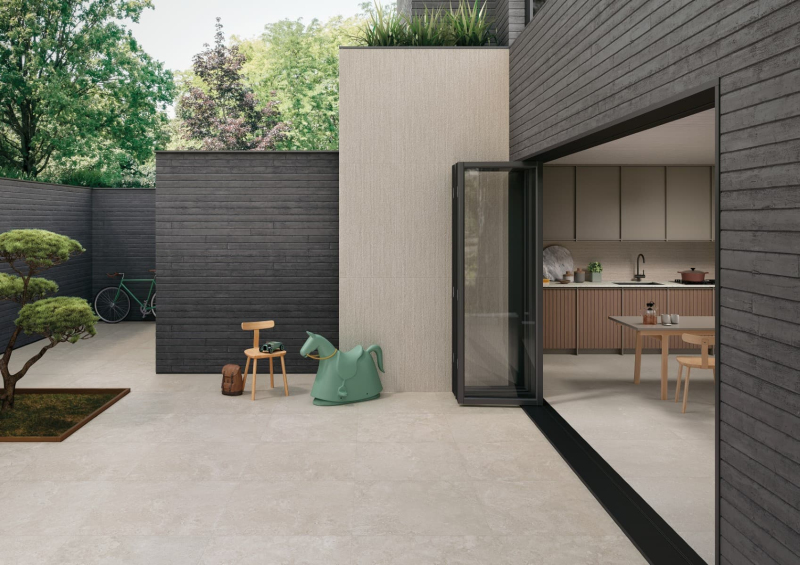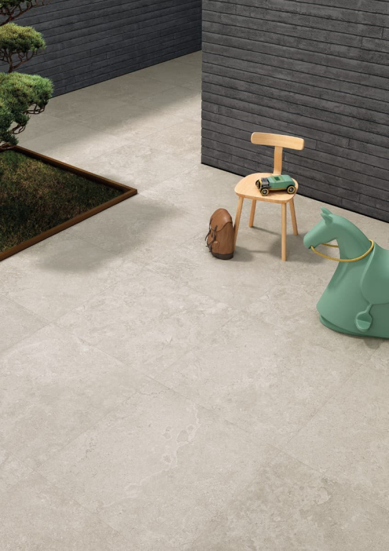 Rektifikované. Mrazuvzdorné. Dlažba v barevném provedení naturel a v imitaci kamene o rozměru 79,8x79,8 cm a tloušťce 9,5 mm s matným povrchem. Vhodné do interiéru i exteriéru. S velkými rozdíly v odstínu barev, struktury povrchu a kresby.PEI 5 – nejvyšší odolnost