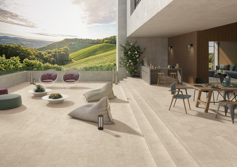 Rektifikované. Mrazuvzdorné. Dlažba v barevném provedení naturel a v imitaci kamene o rozměru 59,8x119,8 cm a tloušťce 9,5 mm s matným povrchem. Vhodné do interiéru i exteriéru. S velkými rozdíly v odstínu barev, struktury povrchu a kresby.PEI 5 – nejvyšší odolnost