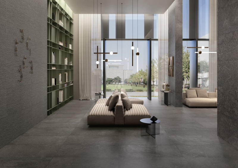 Rektifikované. Mrazuvzdorné. Dlažba v barevném provedení noir a v imitaci kamene o rozměru 59,8x119,8 cm a tloušťce 9,5 mm s matným povrchem. Vhodné do interiéru i exteriéru. S velkými rozdíly v odstínu barev, struktury povrchu a kresby.PEI 5 – nejvyšší odolnost
