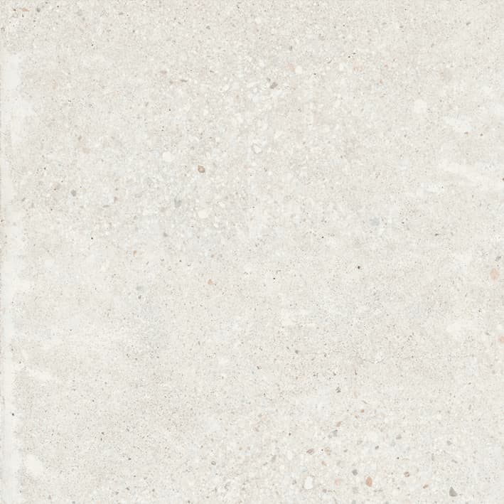 Mrazuvzdorná a rektifikovaná dlažba v bílé barvě o rozměru 60x60 cm a tloušťce 10 mm s pololesklým povrchem. Vhodné do interiéru i exteriéru. S velkými rozdíly v odstínu barev, struktury povrchu a kresby. Vysoce odolné proti opotřebení. Vhodné do hal hotelů, obchodů a garáže.