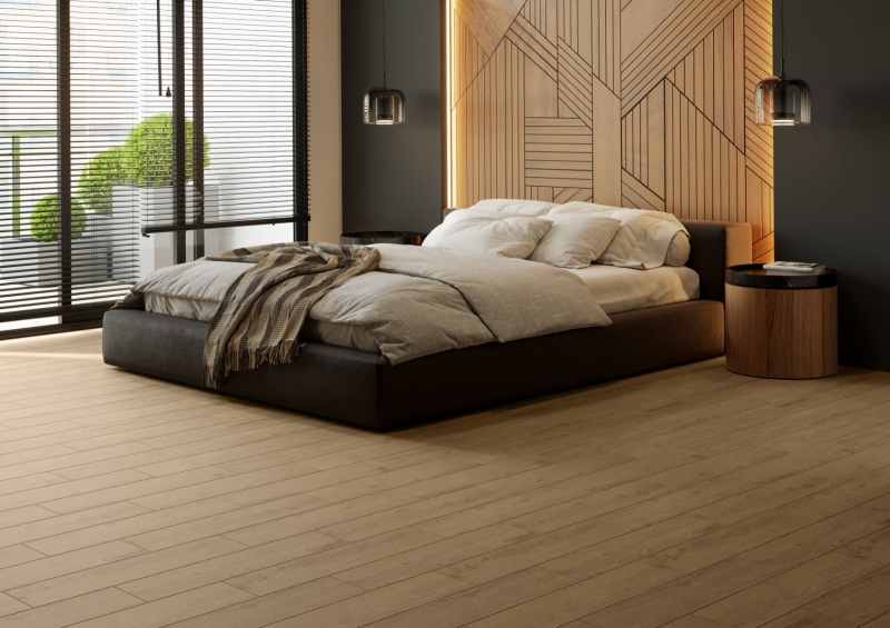 Mrazuvzdorné. Dlažba v béžové barvě a v imitaci dřeva a tloušťce 7 mm s matným povrchem. Vhodné do interiéru i exteriéru. S velkými a nahodilými odchylkami v odstínu barev, struktury povrchu a kresby. Vhodné do kuchyně, kanceláří, na balkóny.
