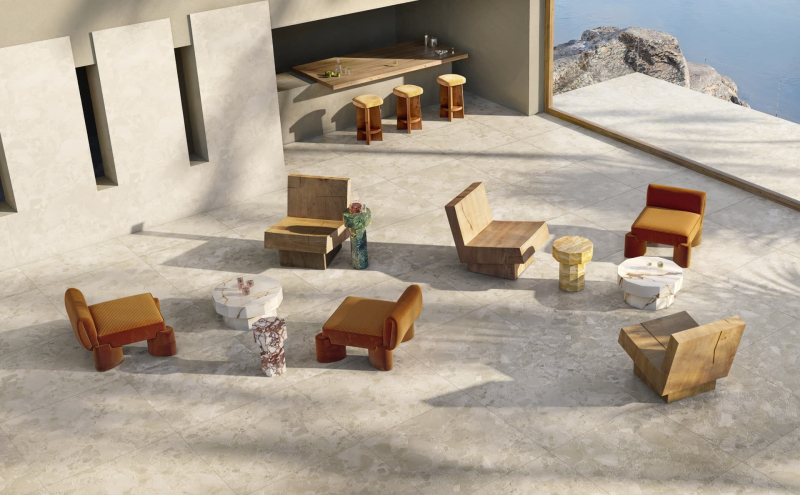 Rektifikované. Mrazuvzdorné. Dlažba v barvě greige a v imitaci kamene o rozměru 119,5x119,5 cm a tloušťce 8,5 mm s matným povrchem. Vhodné do interiéru i exteriéru.PEI 5 – nejvyšší odolnost