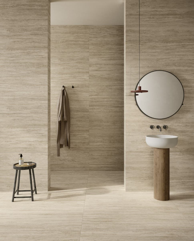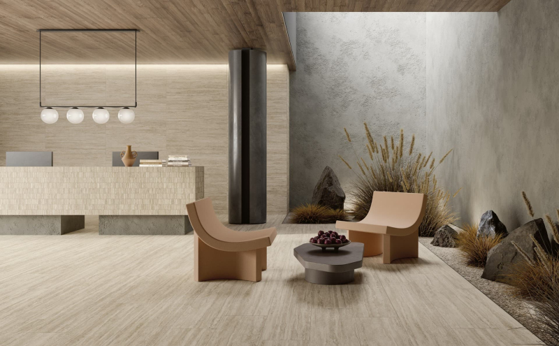 Rektifikované. Mrazuvzdorné. Dlažba v barvě beige a v imitaci kamene o rozměru 60x60 cm a tloušťce 8,5 mm s lesklým povrchem. Vhodné do interiéru i exteriéru. S malými rozdíly v odstínu barev, struktury povrchu a kresby. Vysoce odolné proti opotřebení. Vhodné do hal hotelů, obchodů a garáže.