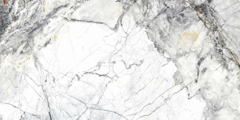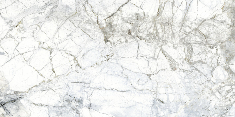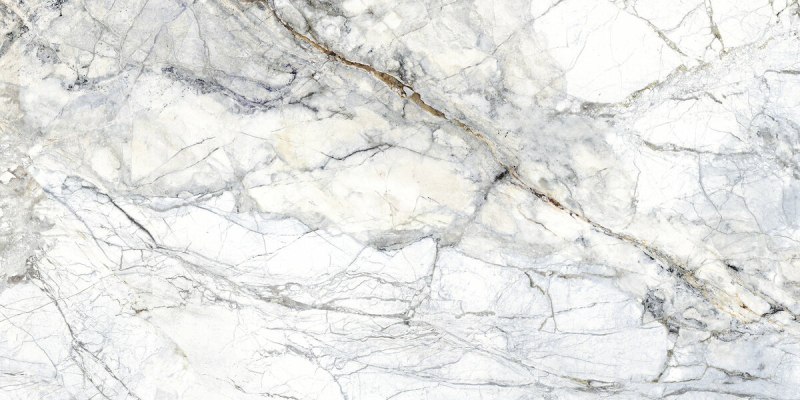 Rektifikovaná dlažba v bílé barvě v imitaci mramoru o rozměru 60x120 cm a tloušťce 11,5 mm s lesklým povrchem. Vhodné pouze do interiéru. S velkými rozdíly v odstínu barev, struktury povrchu a kresby.