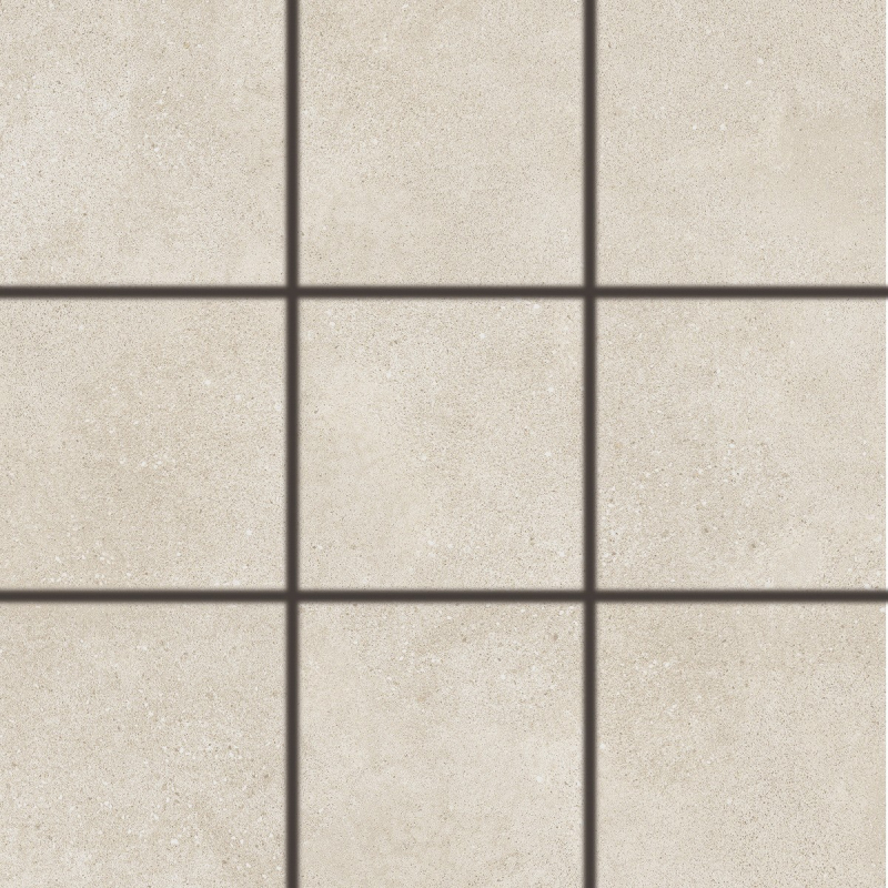 Rektifikované. Mrazuvzdorné. Dlažba ve světle béžové barvě a v betonovém designu o rozměru 9,8x9,8 cm a tloušťce 9 mm s matným povrchem. Vhodné do interiéru i exteriéru. S velkými rozdíly v odstínu barev, struktury povrchu a kresby. Vysoce odolné proti opotřebení. Vhodné do hal hotelů, obchodů a garáže.